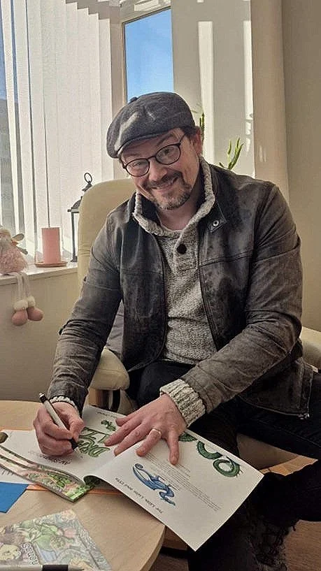 Alex is a freelance artist/illustrator who lives with his young family (and pets!) near Swindon. He can often be found up in his loft studio creating work in a myriad of media from paint and pencil to iPad and ‘procreate’. Alex’s usual commissions are for bold and colourful animals getting up to all sorts of capers in stories, but he’s also been sought after for creating work for educational schemes and older readers. Some of his more memorable commissions have been working with the Great Bustard Group (on Salisbury plain) where he survived a face to face encounter with ‘Fergus’ the flightless ‘Tigerbird’ and having his work on snakebite education adopted by local governments in India. His past careers as a teacher, zookeeper (as well as other current roles of storyteller and museum educator – you may spot him in ‘Steam’ one day!) allow him to bring plenty of knowledge and ideas to the work he creates. When not in the studio he likes to be out and about in the Wiltshire countryside with his family and playing his guitar and mandolin (but not all at the same time!)